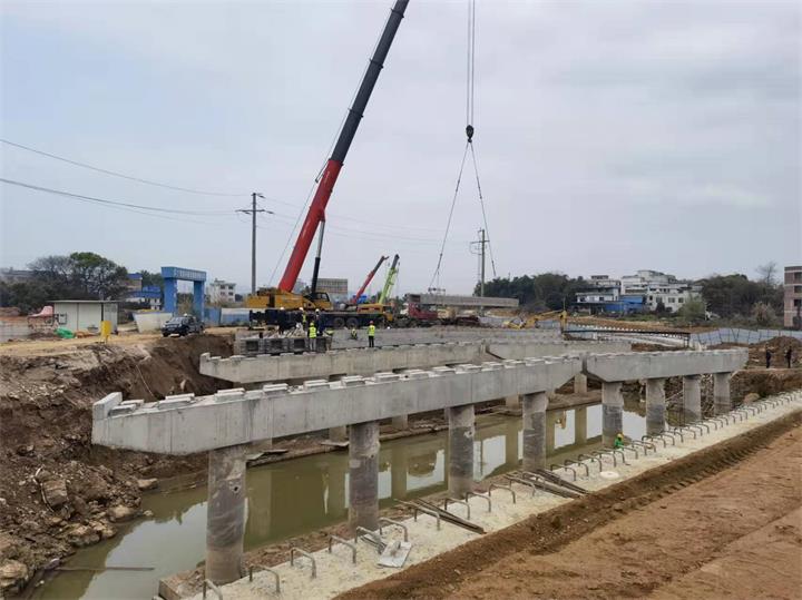 生態新城永康路育才河橋開展架梁施工