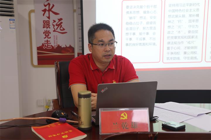 為深入貫徹落實全面從嚴治黨要求,進一步推進黨風廉政建設,增強支部黨員廉潔自律意識,筑牢拒腐防變的思想道德防線,6月30日,城投公司黨支部書記、董事長蘭乾雄以《堅持全面從嚴治黨戰略方針——打好黨風廉政建設持久戰》為主題,為公司全體黨員、入黨積極分子上了一堂生動的廉政黨課。