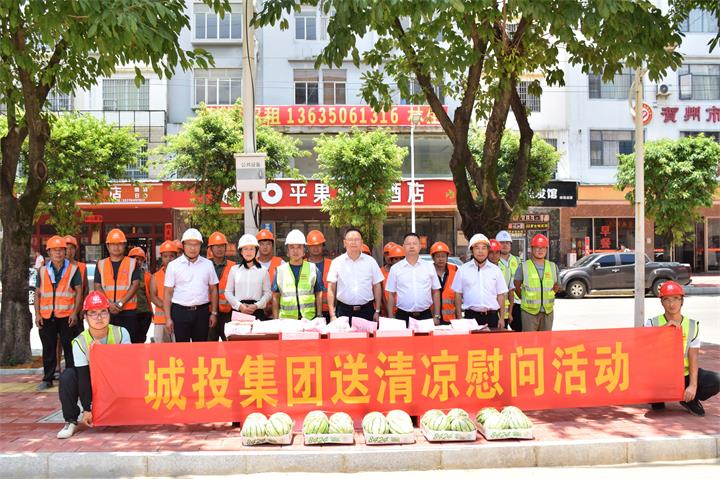 連日來,賀州市頻繁發布高溫預警,熱浪襲人。7月27日,為傳達城投集團黨委的關心關愛,集團黨委書記、董事長黃俊到賀州市城市品質提升改造項目(城區道路白改黑)開展送清涼慰問活動,為高溫下堅守一線的勞動者送上西瓜、涼茶等防暑降溫慰問品。