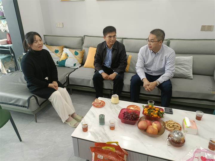 在何立健同志家中,蘭乾雄與何立健同志及其家人進行親切交談,詳細詢問家中近期工作生活、身體健康等具體情況,了解他們在生活中是否存在實際困難。同時,在慰問過程中,蘭乾雄聽取了何立健同志近期鄉村振興工作開展情況,以及盤石村在疫情防控、經濟創新經營生產、基礎設施建設等方面工作情況的匯報。