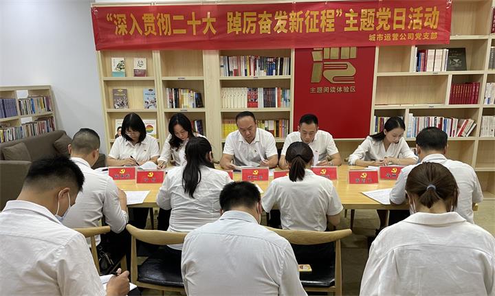 城投集團機關第一黨支部在市人才公寓紅灣閱讀體驗區開展“禮贊二十大 建功新時代”10月主題黨日活動。活動以集中學習,開展主題研討為主要形式,要求支部全體黨員要提高站位,在思想上政治上行動上同以習近平同志為核心的黨中央保持高度一致,緊跟偉大復興領航人踔厲篤行。要認真領會,堅持學原文悟原理,準確把握精神實質,推動黨的二十大精神落地生根。要學以致用,狠抓落實,進一步細化工作舉措、壓實責任,攻堅克難,切實把學習貫徹二十大精神的成果體現在推動工作、促進發展的實績上,全力推動完成集團全年目標任務。