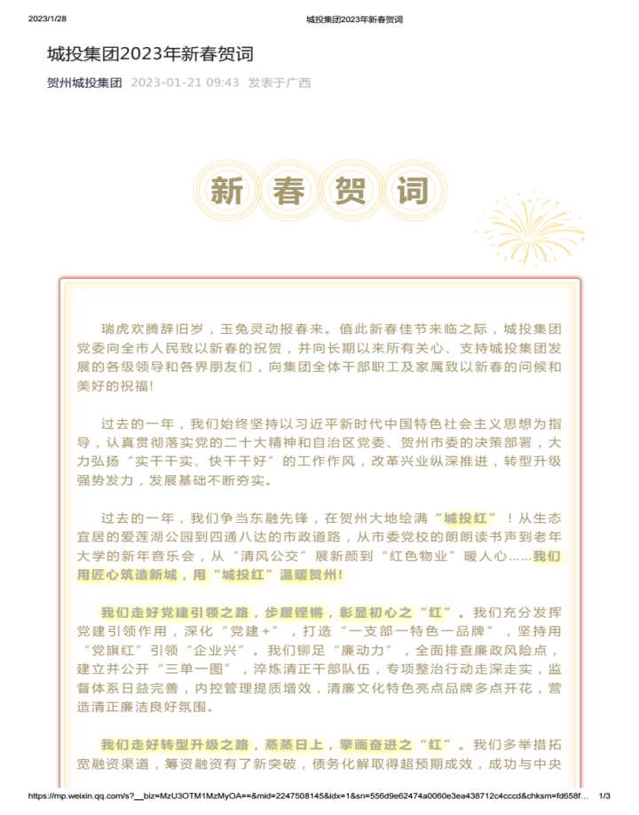城投集團2023年新春賀詞