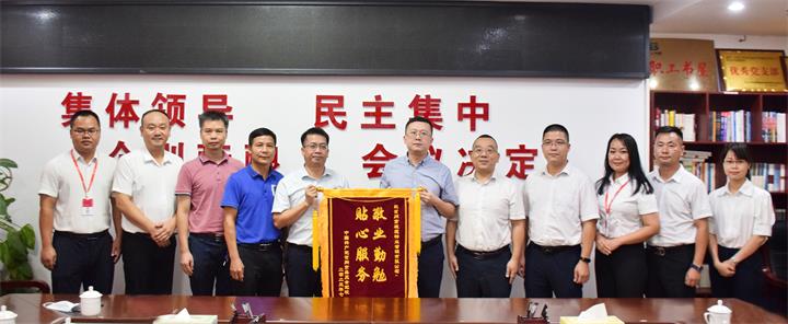 7月12日下午,賀州市市委黨校副校長唐永波一行來到城投集團,將一面印有“敬業(yè)勤勉 貼心服務(wù)”的錦旗和感謝信送到了城投集團黨委委員、副總經(jīng)理陳桂軍手中,為城投物業(yè)公司高質(zhì)量服務(wù)點贊。