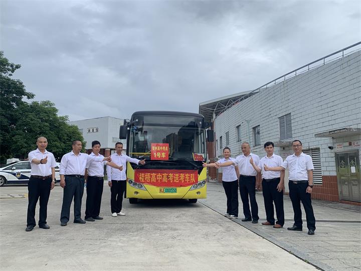 高考期間,公交公司共調度19臺公交車,作送考專用車,在桂梧高中、賀州市第五高級中學、賀州外國語學校等考點接送考生往返,共護送考生4994人次。送考車輛均統一張貼標識,每輛車輛均配備1名秩序維護員引導車輛安全進出、引導考生有序上下車并處理現場應急突發事件,為高考學子提供了安全、舒適、便捷的送考服務。